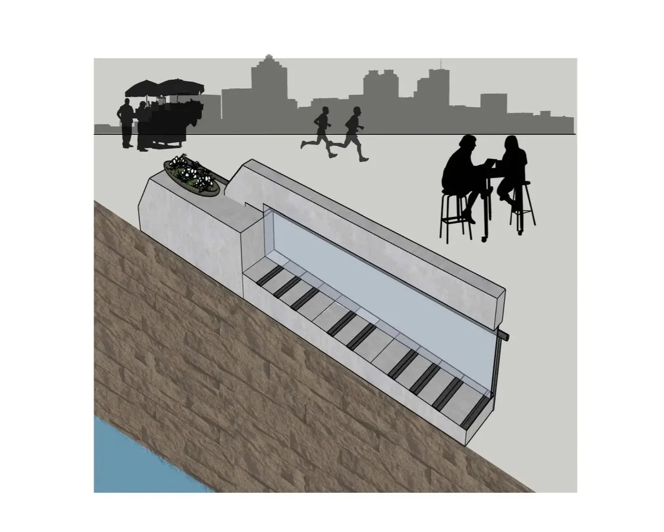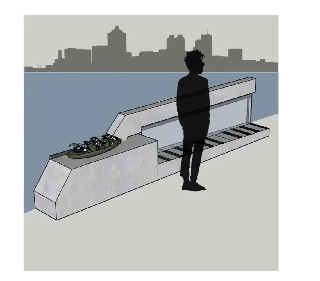 Design concept for a public harbor plaza and outdoor sculpture pavilion.